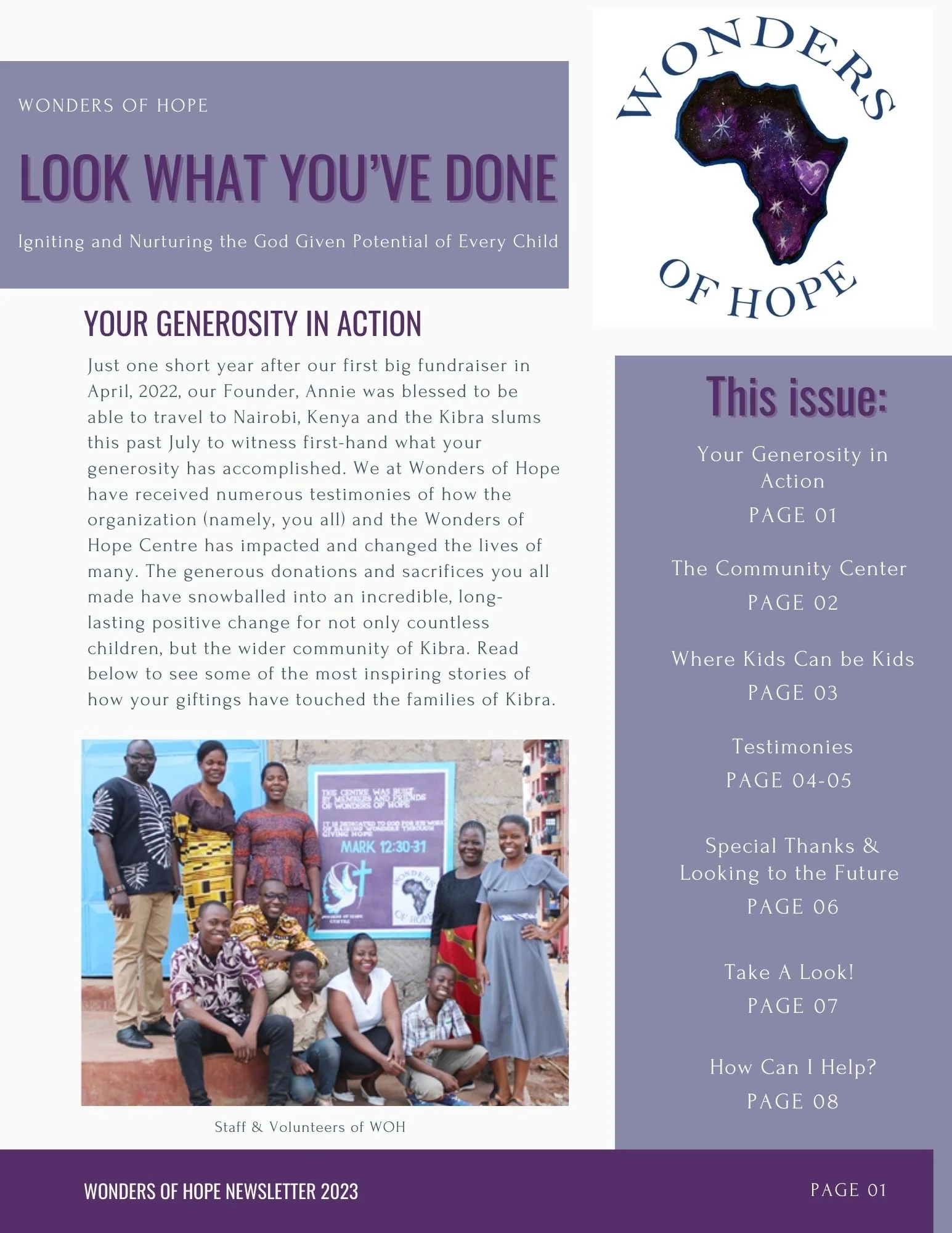 Client: Wonders of Hope is a Non-Profit based in Northern California and Kibra, Nairobi, Kenya. They provide financial, physical, and socal support to the largest slum community in Africa.
