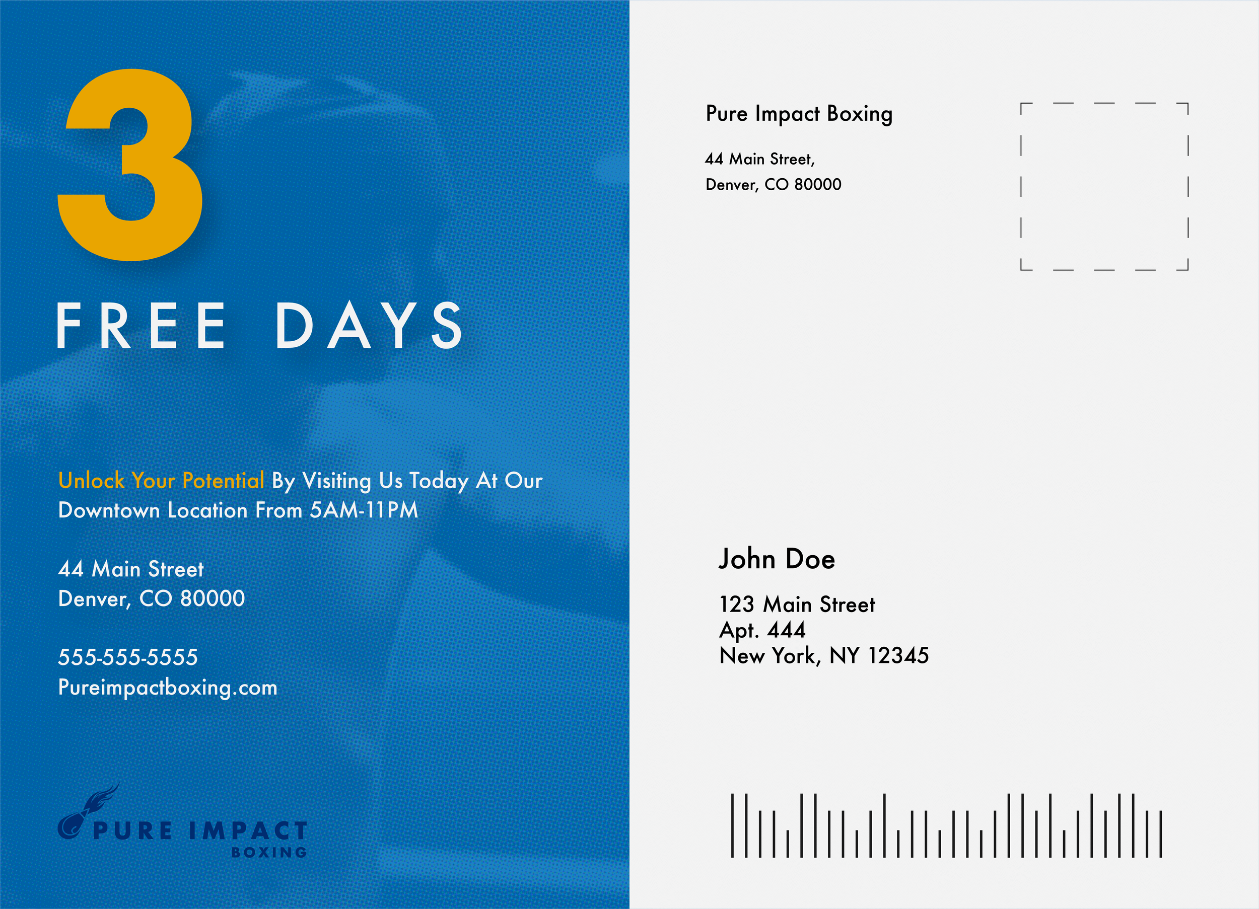Client: Pure Impact Boxing is a boxing gym that offers a variety of boxing classes, training, and equipment and caters to those who don’t have time to fit the gym into normal daytime hours.